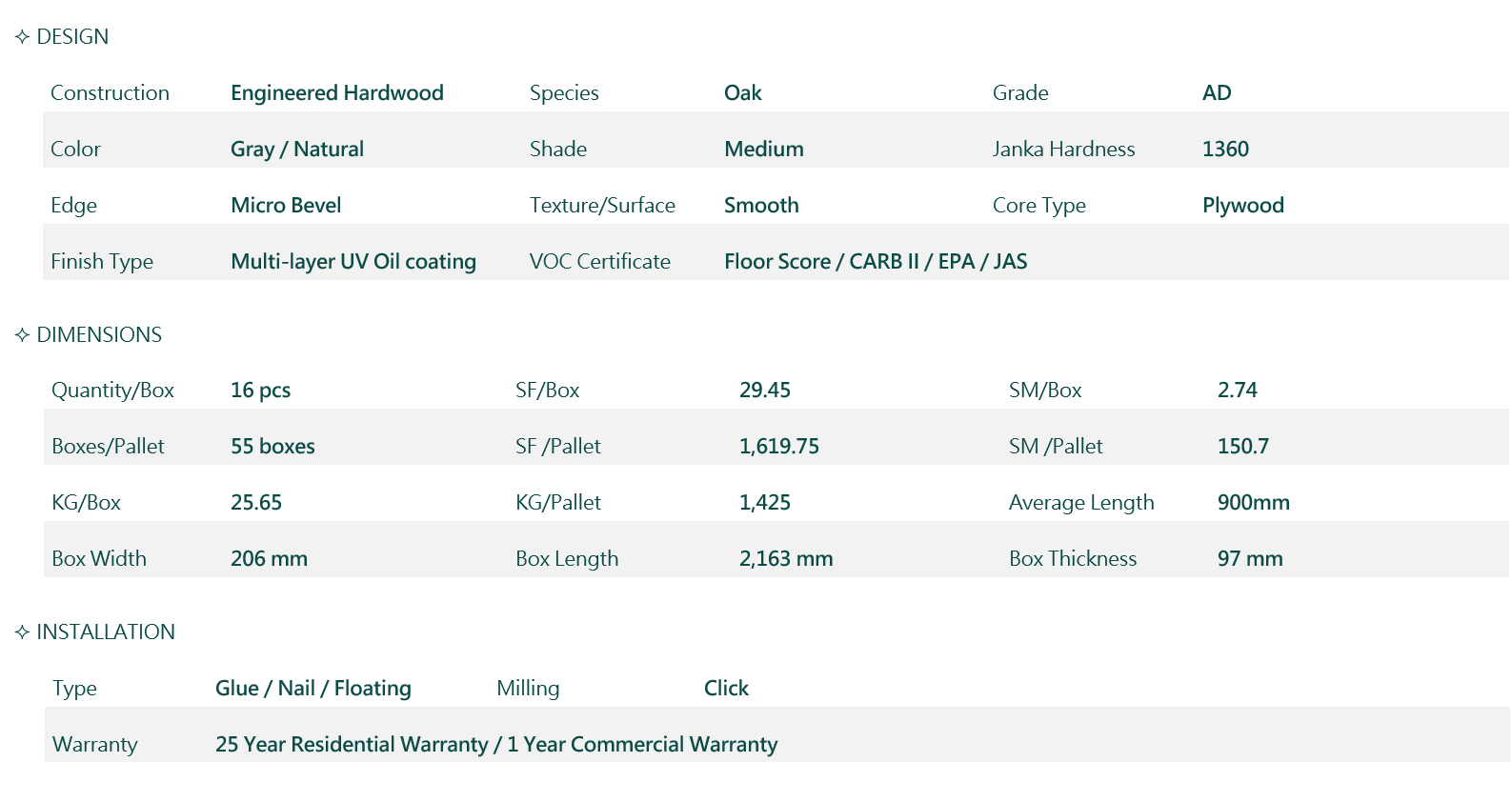 Swedish patented technology, the angle-in and drop-in locking system has superior stability and convenience, allowing the installation process smooth and easy.