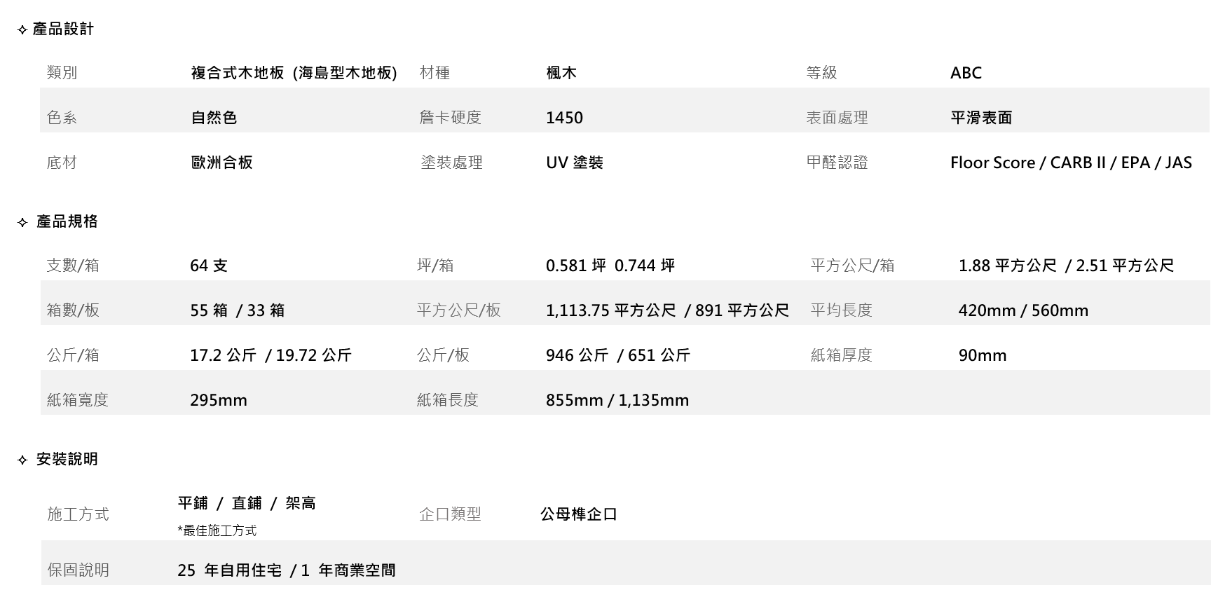 精算復古經典比例,嚴選8款木質材種,講究華麗與精緻的設計風格,有如歐式宮廷裡的長廊,在歷經百年歲月後,仍散發經典魅力。