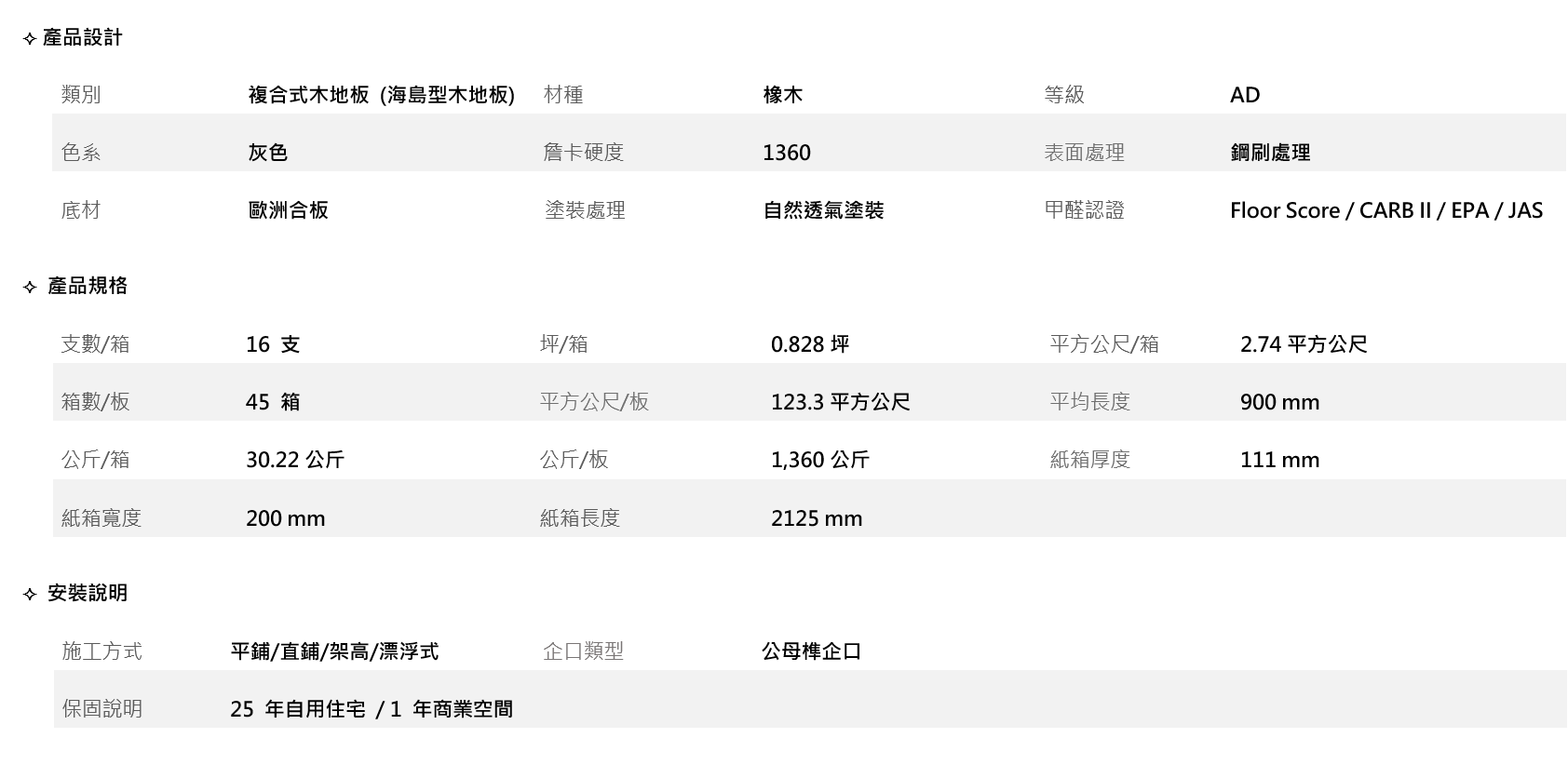 巴黎輕法系列以歐洲白橡木作為主要材種,以法國浪漫的著名城市為基底色,優雅古典的情調中不帶有炫麗浮誇的顏色表現,190mm寬板配上3mm天然實木層,經過嚴格的材種挑選和質量檢驗,呈現出其木頭質感與紋理的完整性;鋪設於極簡風、大坪數的空間裡,更能展現其優雅與大氣。